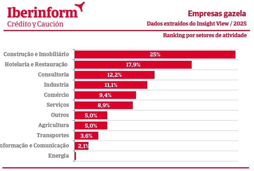 O estudo destas empresas identifica os setores com maior concentração, Construção e Imobiliário (25%), Hotelaria e Restauração (17,9%) e Consultoria (12,2%), que em conjunto representam 55,1% do total.