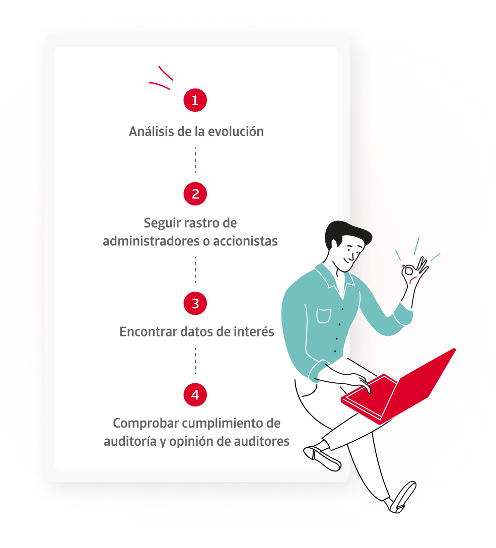 Los informes cuentan con información de capital social, cuentas de resultados, registros, socios, si estos participan en otras empresas o son solventes, etc.