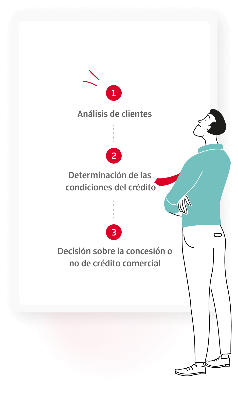 Desde la perspectiva del proveedor, la gestión del crédito comercial suele incluir una serie etapas que persiguen minimizar el riesgo de impago, y que deben ser adaptadas a la tipología de clientes que se tenga en cada caso: