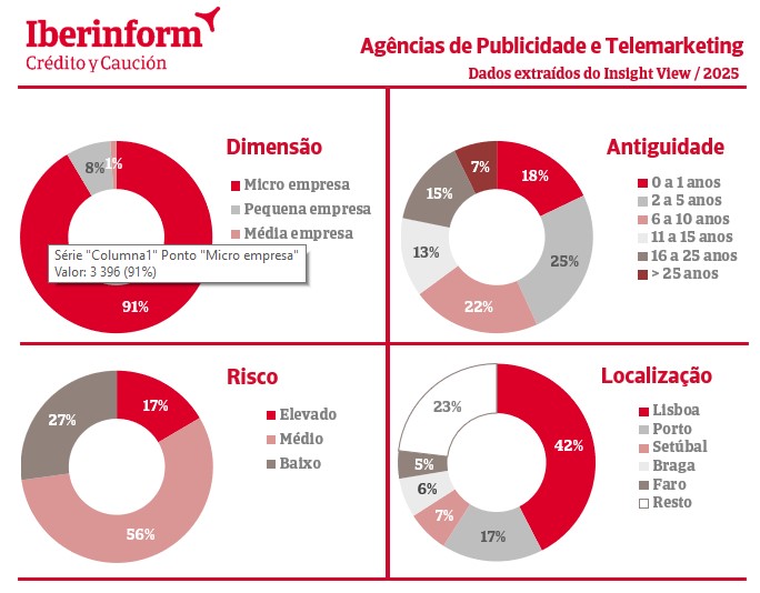 Segundo os dados do Insight View, a maioria das agências de publicidade e empresas de telemarketing estão concentradas em Lisboa, com 42% do total, seguido pelo Porto, com 17%, Setúbal com 7%, Braga com 6% e Faro com 5%. O restante território nacional representa os restantes 23% das empresas.