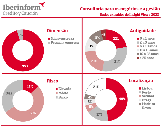 Em termos de dimensão empresarial, o setor é dominado por microempresas, que representam 95% do tecido empresarial, enquanto as pequenas empresas compõem os restantes 5%. Essa estrutura reflete a natureza especializada e ágil do setor, onde muitas empresas operam em nichos de consultoria específicos.