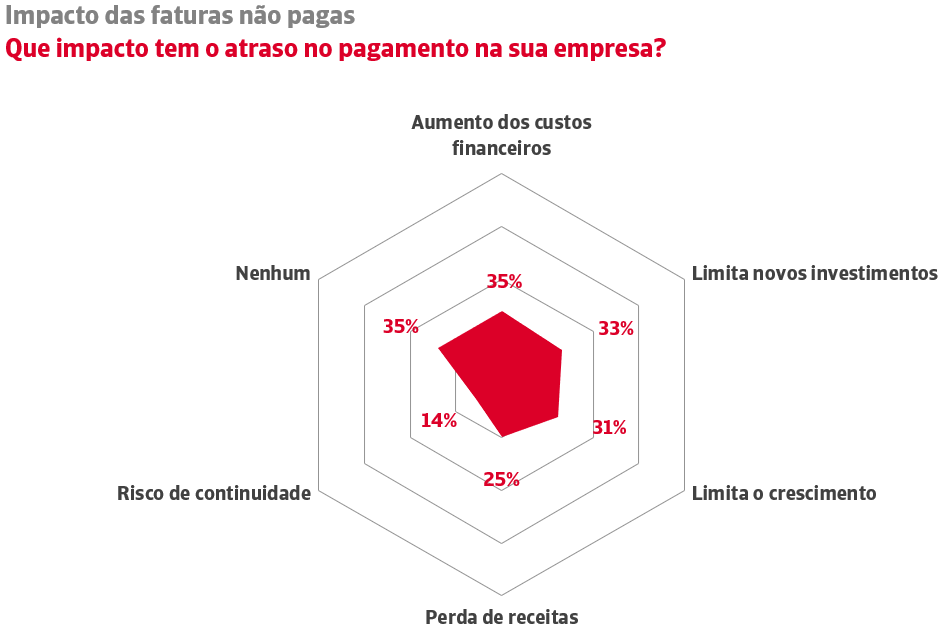 De acordo com o Estudo de Gestão do Risco de Crédito, 35% das empresas portuguesas registaram aumentos nos seus custos financeiros decorrentes da morosidade e 33% devem limitar os seus novos investimentos. Além disso, 31% foram obrigadas a travar a sua expansão comercial e 25% enfrentam perdas de receitas significativas.