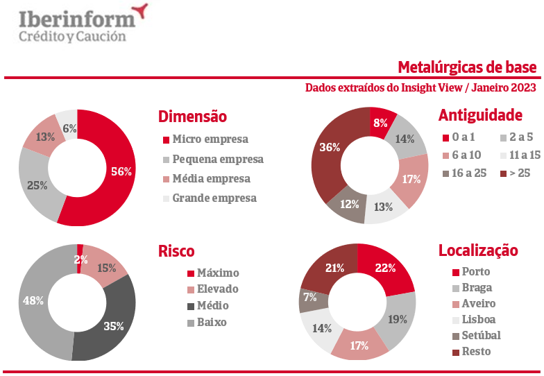Segundo o Insight View, estas empresas estão concentradas com maior expressão nos grandes centros urbanos: Porto (22%), Braga (19%), Aveiro (17%), Lisboa (14%) e Setúbal (7%). Dos cinco distritos líderes do setor, Lisboa é o que apresenta a maior deterioração do risco de crédito: 24% das metalúrgicas de base da capital encontram-se num nível máximo ou elevado de incumprimento. Seguem-se Aveiro (18%), Porto (16%), Braga (11%) e Setúbal (6%).
