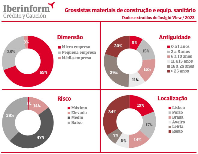 Por consequência, os grossistas de materiais de construção e equipamento sanitário são maioritariamente micro e pequenas empresas (69% e 28% respetivamente), contabilizando 60% do total de volume de negócios. Os restantes 3% de empresas dividem-se entre empresas de média e grande dimensão, sendo que totalizam 40% do volume de negócios.