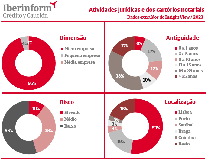 A antiguidade das empresas no setor das atividades jurídicas e dos cartórios notariais é bastante diversificada, refletindo uma combinação de empresas mais recentes e outras com uma longa tradição. De acordo com os dados do Insight View, cerca de 6% das empresas têm até um ano de existência, enquanto 17% têm entre dois e cinco anos. Além disso, 38% das empresas possuem uma antiguidade entre 16 e 25 anos, e 17% com mais de 25 anos, o que traduz uma presença consolidada e duradoura no setor destas empresas.