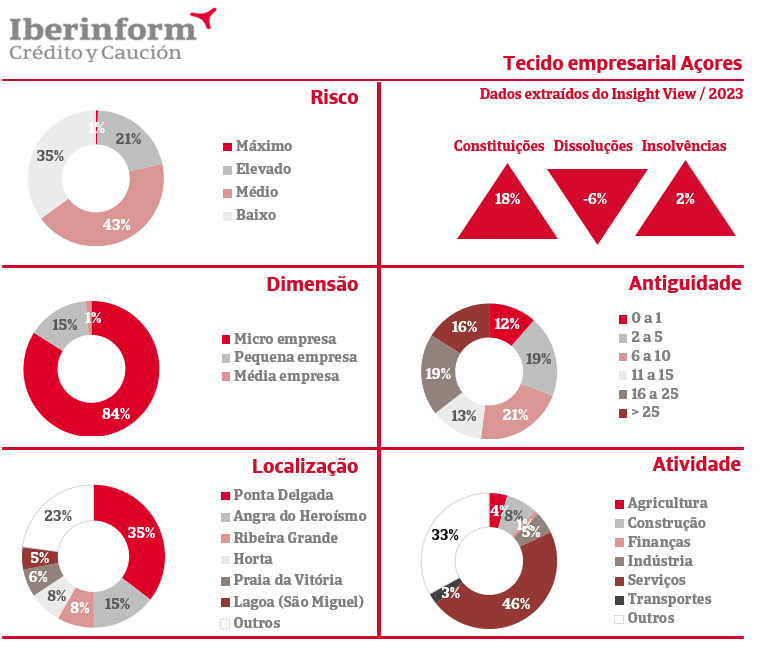 Em 2022, os Açores registaram uma subida de 2% nos processos de insolvência, comparando com o ano anterior. Em relação às dissoluções de empresas, ocorreu um decréscimo de 6%, no mesmo período. Contrariamente, foram constituídas 586 empresas novas nos Açores, que representa um aumento significativo de 18% face a 2021.