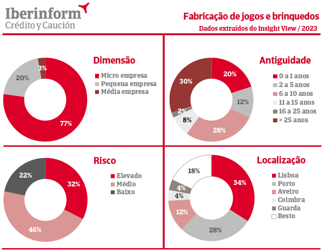 Segundo o Insight View, a concentração das empresas que fabricam jogos e brinquedos é mais expressiva nos principais centros urbanos do país, nomeadamente Lisboa (34%), Porto (28%) e Aveiro (12%). Quanto à dimensão das empresas, a grande maioria são micro (77%) e pequenas empresas (20%).