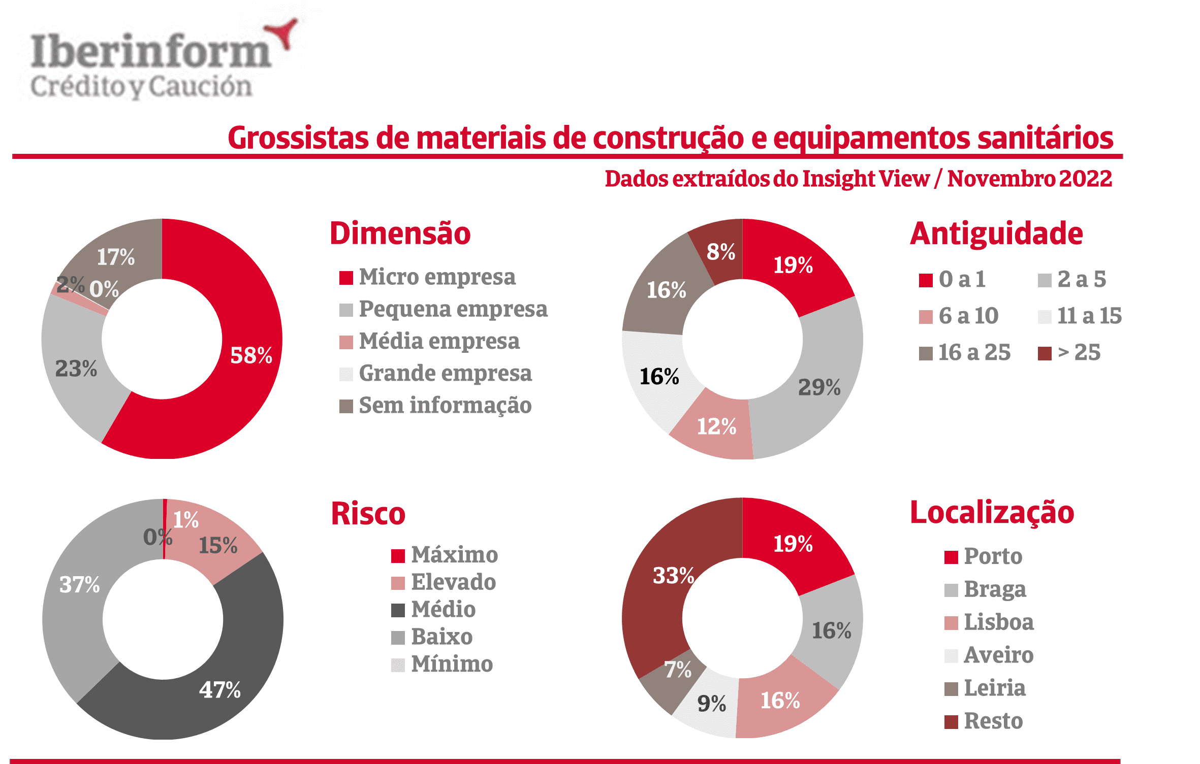 O setor destaca-se por ter uma elevada dinâmica empresarial, em que 48% das empresas foram constituídas há menos de cinco anos. Dentro deste conjunto, 19% foram criadas no último ano. Durante os primeiros nove meses do ano de 2022 já foram constituídas mais 27% empresas comparando com o período homólogo de 2021. Por consequência, os grossistas de materiais de construção e equipamento sanitário são maioritariamente micro (58%) e pequenas empresas (23%), contabilizando quatro em cada cinco empresas do sector.