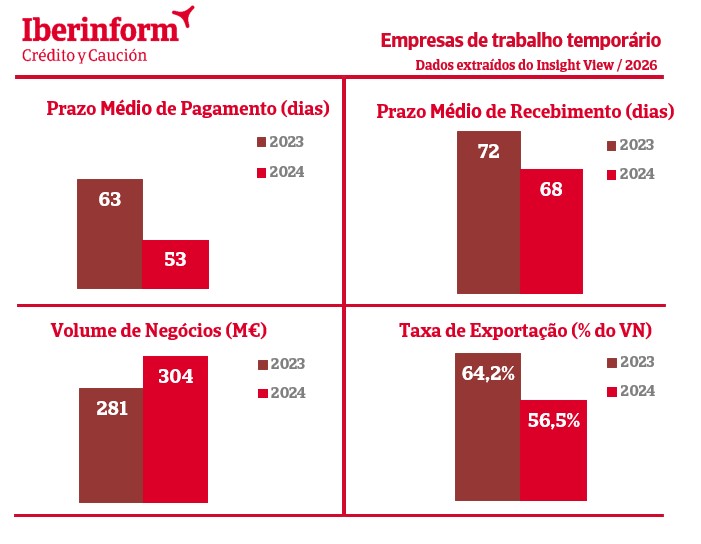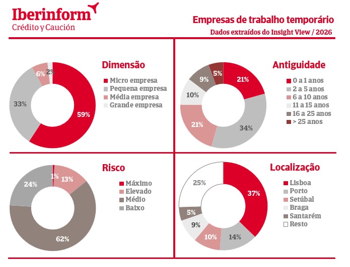 De acordo com os dados do Insight View, 62% das empresas de trabalho temporário apresentam um risco médio de incumprimento e 24% das mesmas possui um nível de risco baixo. Isto demonstra que, neste setor, o risco é, maioritariamente, equilibrado.