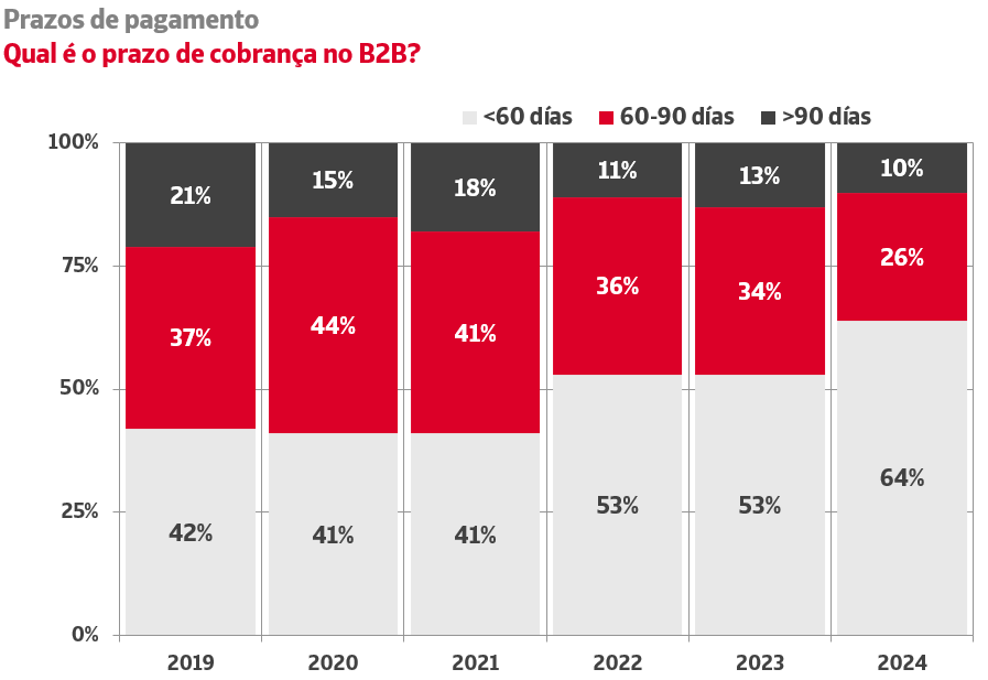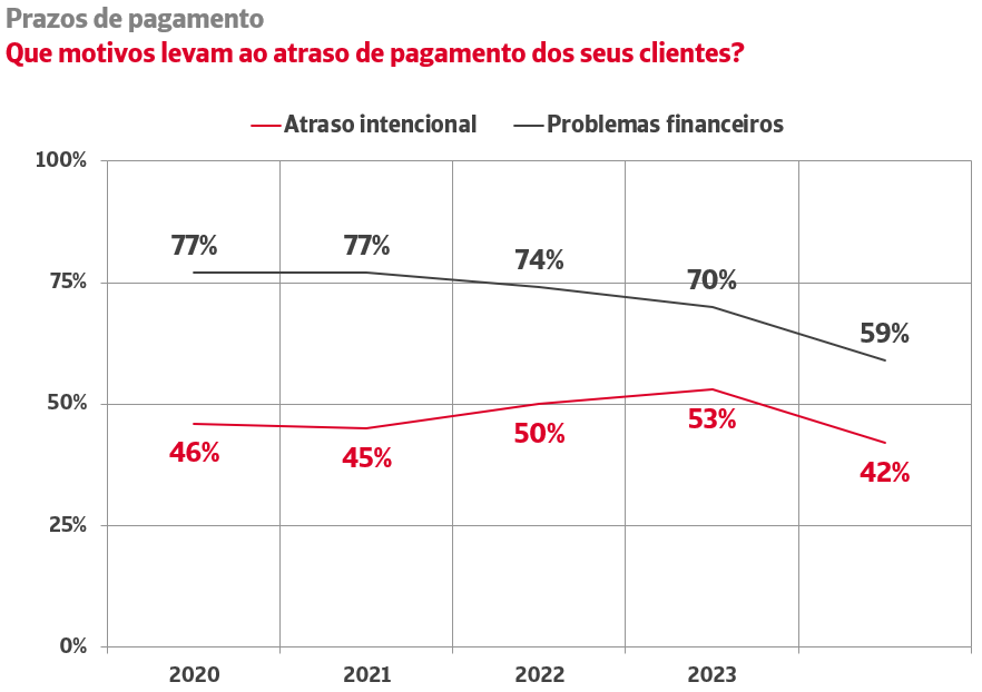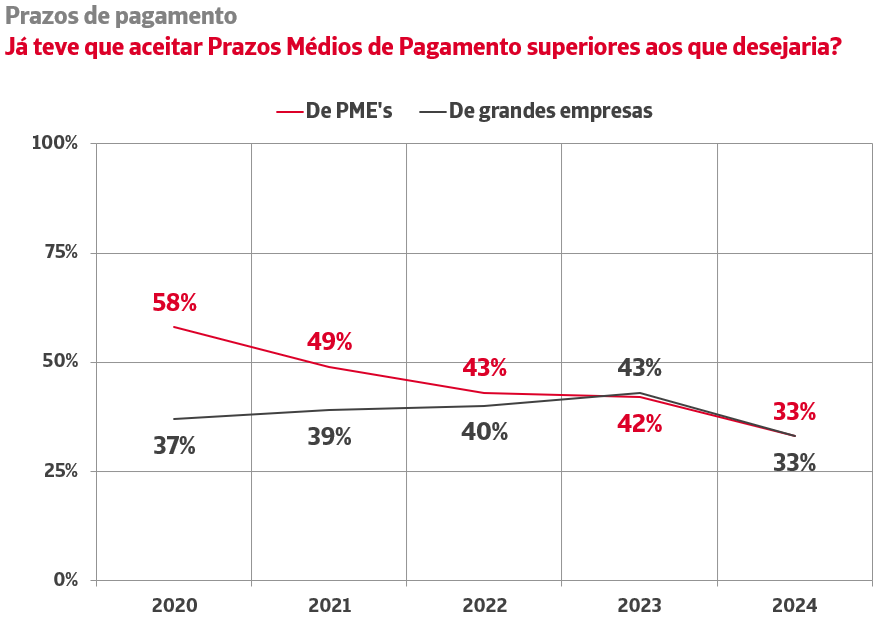 Desde a pandemia, a imposição de prazos mais longos por parte das pequenas e médias empresas tem sido progressivamente reduzida. As grandes empresas também melhoraram significativamente o seu comportamento enquanto clientes em 2024.
