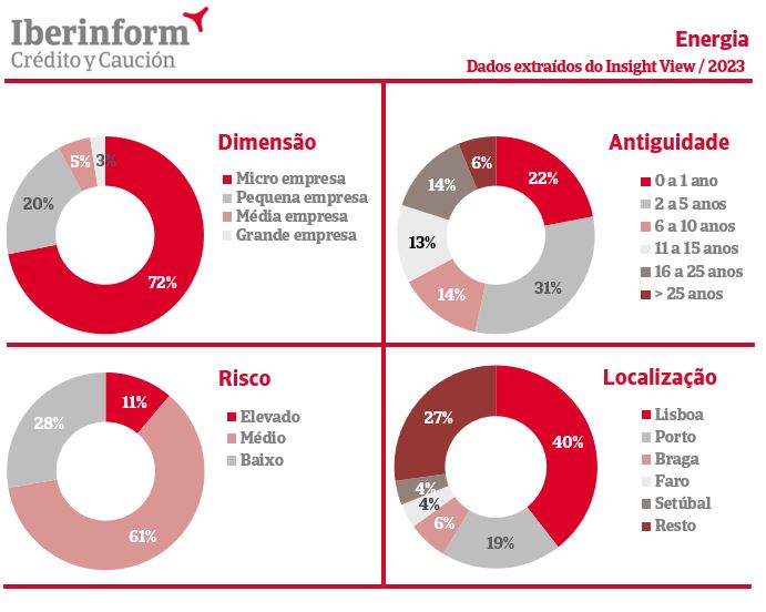 Ao analisar o risco associado às empresas do setor de energia em Portugal, podemos observar uma distribuição diversa. Cerca de 11% das empresas enfrentam um risco de incumprimento elevado, o que pode estar relacionado a vários fatores, como o tipo de energia produzida ou os desafios regulatórios. Por outro lado, a maioria das empresas, aproximadamente 61%, opera num nível de risco considerado médio, enfrentando desafios controláveis e oportunidades equilibradas. Notavelmente, cerca de 28% das empresas têm um risco baixo, refletindo uma situação estável e segura, o que pode ser atribuído ao seu estabelecimento no mercado ou à adoção de estratégias de gestão de risco eficientes.