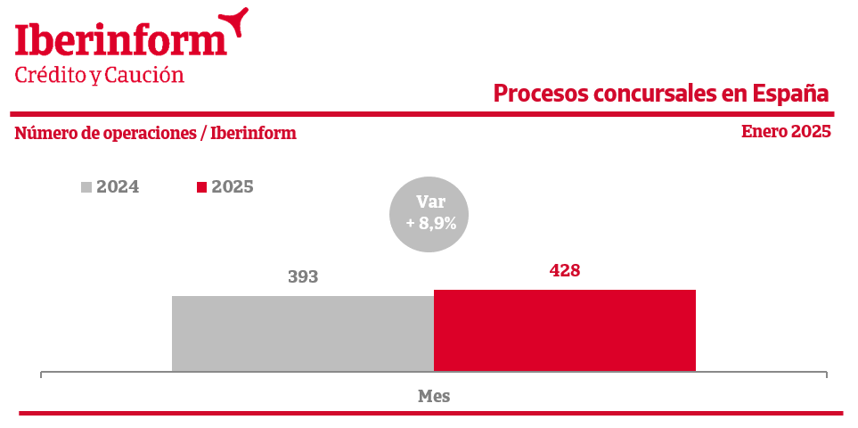 De acuerdo con el seguimiento de los procesos concursales publicados en el BOE que realiza Iberinform, el tejido empresarial registró en enero un aumento interanual del 8,9% de las insolvencias empresariales.