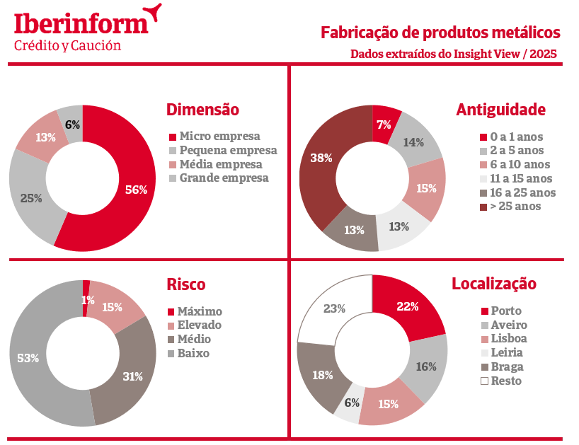As empresas de metalurgia de base constituídas na última década representam 36% do total. A antiguidade é um fator relevante no risco de crédito: entre as empresas criadas nos últimos dez anos, cerca de um terço enfrenta níveis máximos ou elevados de incumprimento. Este número diminui consideravelmente para cerca de 13% nas empresas com 11 a 25 anos, e menos de 5% nas empresas com mais de 25 anos.