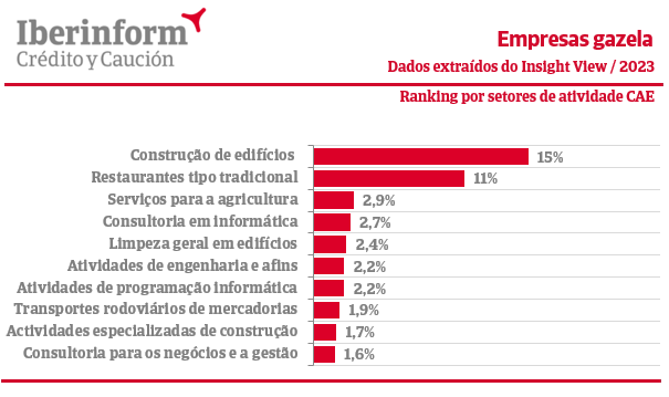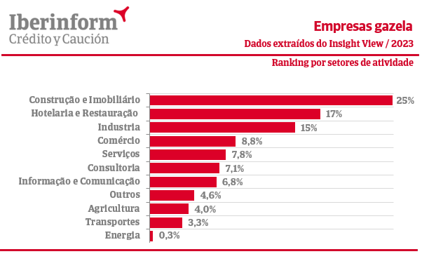 O estudo das empresas gazelas permite-nos detetar clusters onde se concentram empresas jovens e de rápido crescimento. Segundo dados do Insight View, as atividades ligadas à construção e promoção imobiliária (25%), hotelaria e restauração (17,5%) e indústria (14,9%) concentram cerca de 60% das empresas gazela.