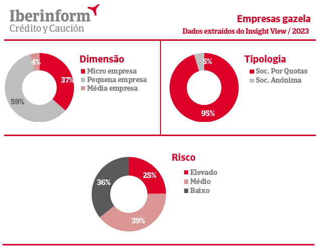 O rápido crescimento destas empresas nem sempre é sinónimo de saúde financeira. Segundo a análise da Iberinform, 25% das empresas gazelas apresentam risco elevado de incumprimento, 39% apresentam risco médio e 36% risco baixo. A maioria das empresas gazelas foi criada com a forma jurídica de sociedade limitada (95%), o que exige uma contribuição de capital inicial menor. Apenas 0,2% atingiram o porte de uma grande empresa, embora 59% mantenham o porte de uma pequena empresa e 37% são médias empresas. As empresas gazela no seu todo empregam perto de 40 mil empregados. No último exercício de 2022, obtiveram um volume de negócios agregado de 2.546 milhões de euros, mais 41% do que no ano anterior. Estas empresas apresentaram uma autonomia financeira de 8,25%.