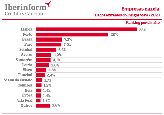 De acordo com a informação empresarial do Insight View, Portugal tem 1.203 empresas gazelas. Isto é 40% das empresas de elevado crescimento económico. As empresas gazela são empresas que, apesar de terem menos de cinco anos, conseguiram gerar dez ou mais empregos e apresentam crescimento médio nos últimos três anos acima de 20%, em emprego ou em volume de negócios. Estas empresas apesar de representarem uma pequena percentagem do universo empresarial, constituem um indicador de dinâmica económica. São um segmento criador de emprego, riqueza, inovação e desenvolvimento nas áreas em que se inserem.