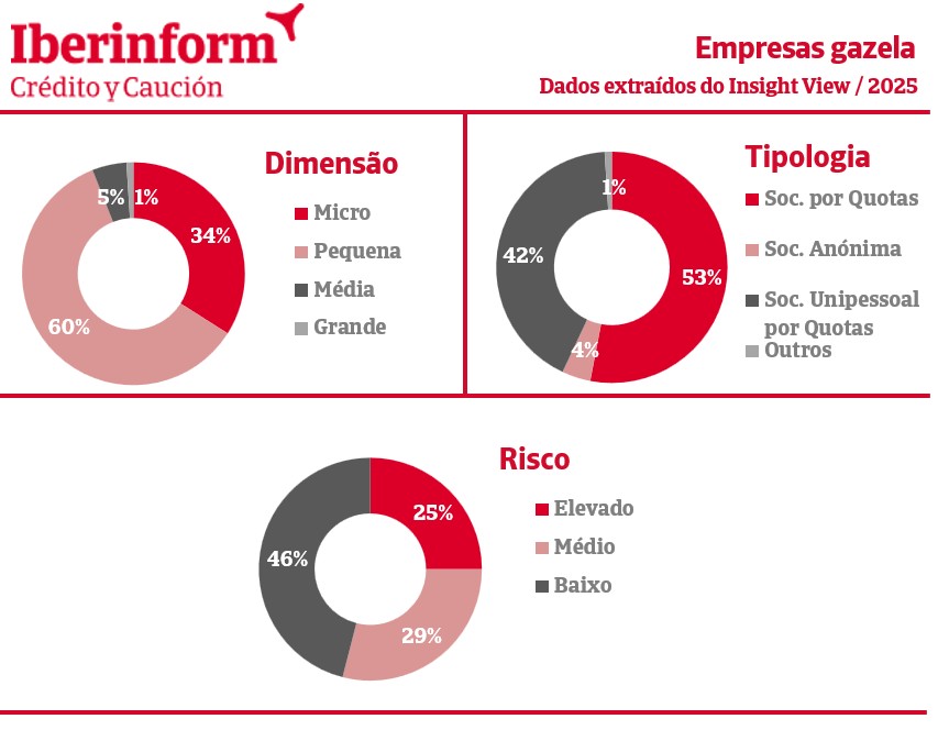 Contudo, o crescimento acelerado nem sempre significa estabilidade financeira. Segundo a Iberinform, 25% das empresas gazela apresentam um risco elevado de incumprimento, 29% têm um risco médio e apenas 46% são classificadas como baixo risco.