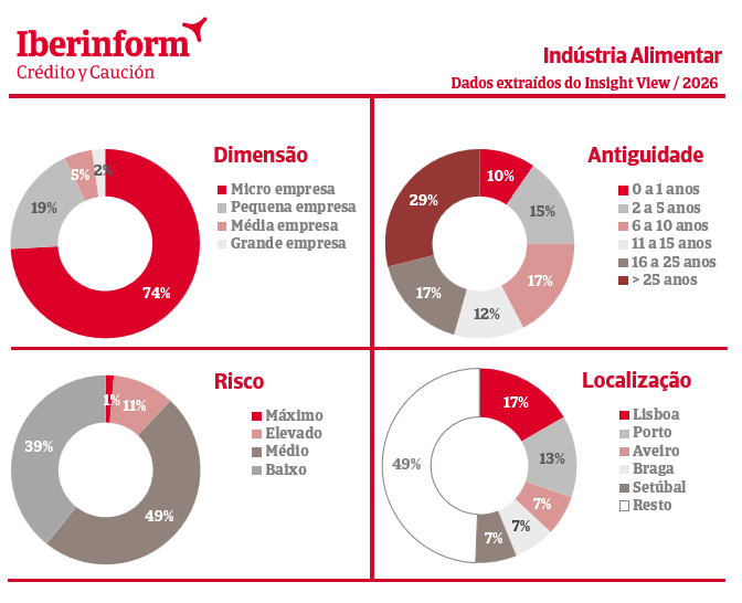 A nova análise da Iberinform ao setor da Indústria Alimentar, baseada nos dados extraídos do Insight View, revela um tecido empresarial altamente fragmentado, de forte tradição e dependente do consumo interno. A estrutura é marcada por um predomínio muito expressivo de microempresas, elevada maturidade e um risco globalmente estável, acompanhados por uma presença territorial ampla e descentralizada.